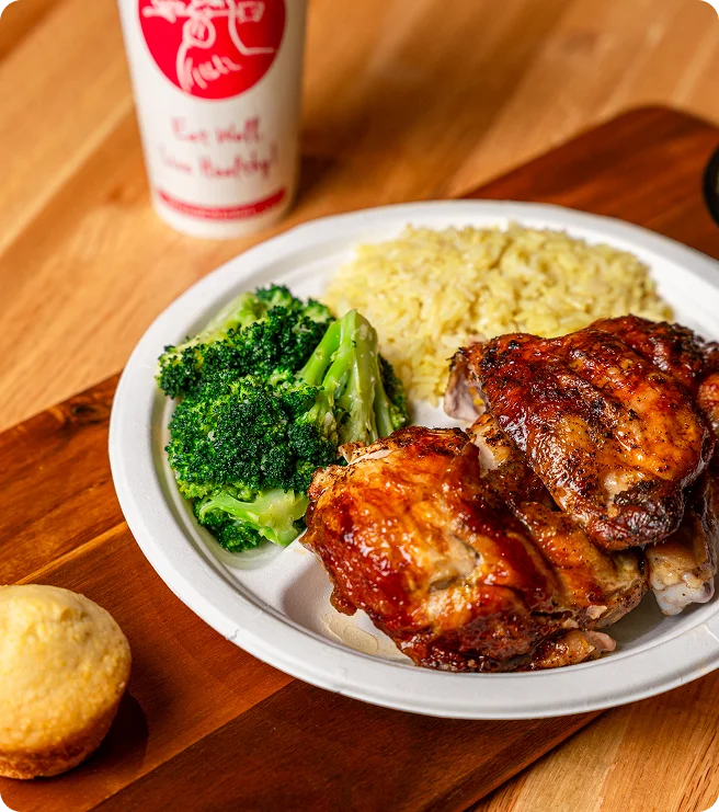 Picture stepping into a modern fast-casual restaurant, where rows of rosemary-marinated chicken sizzle over an open flame. The aroma fills the air as your eyes take in a variety of fresh salads, wholesome sides, and an array of made-from-scratch dishes that make it hard to decide where to start.